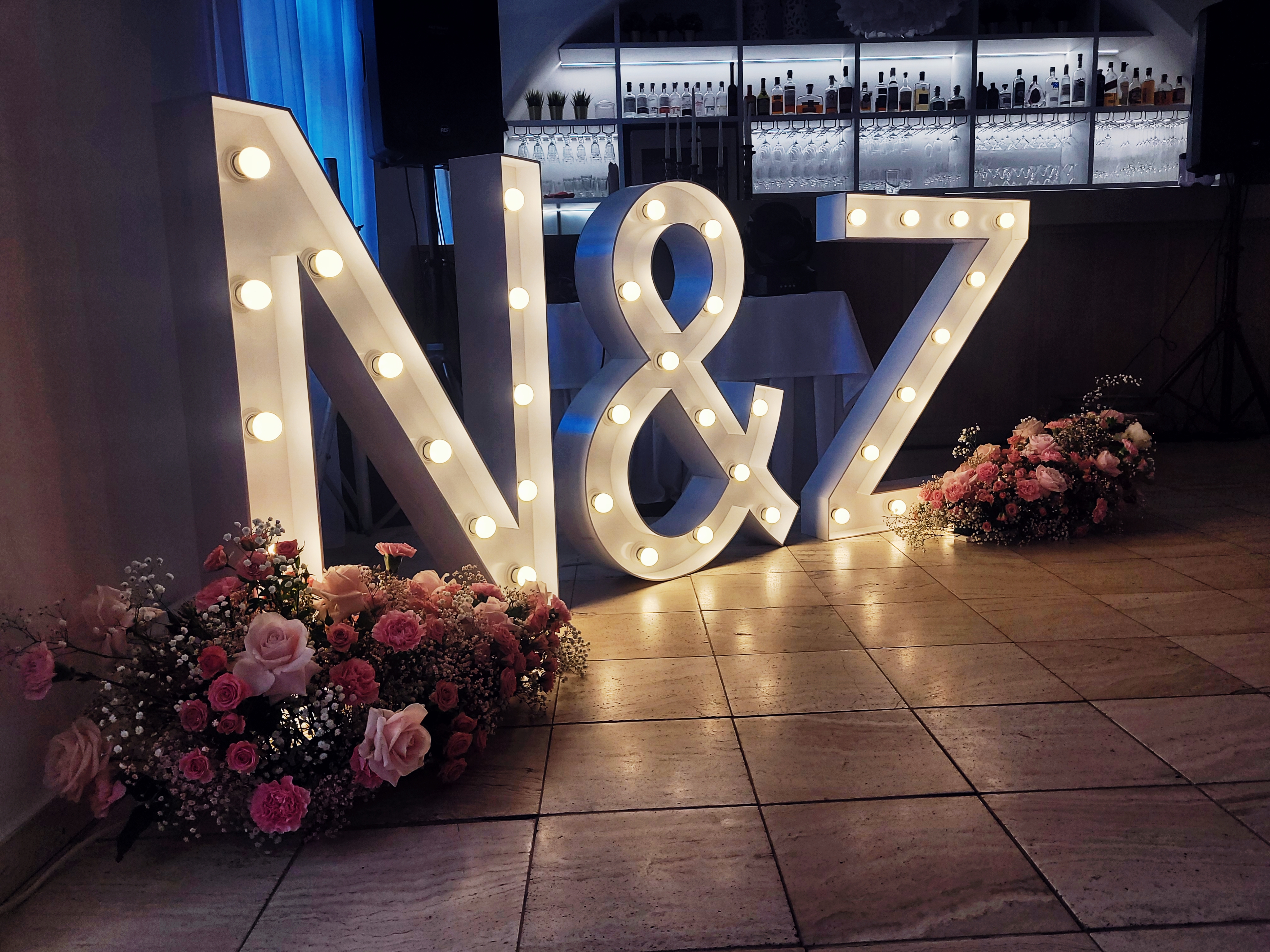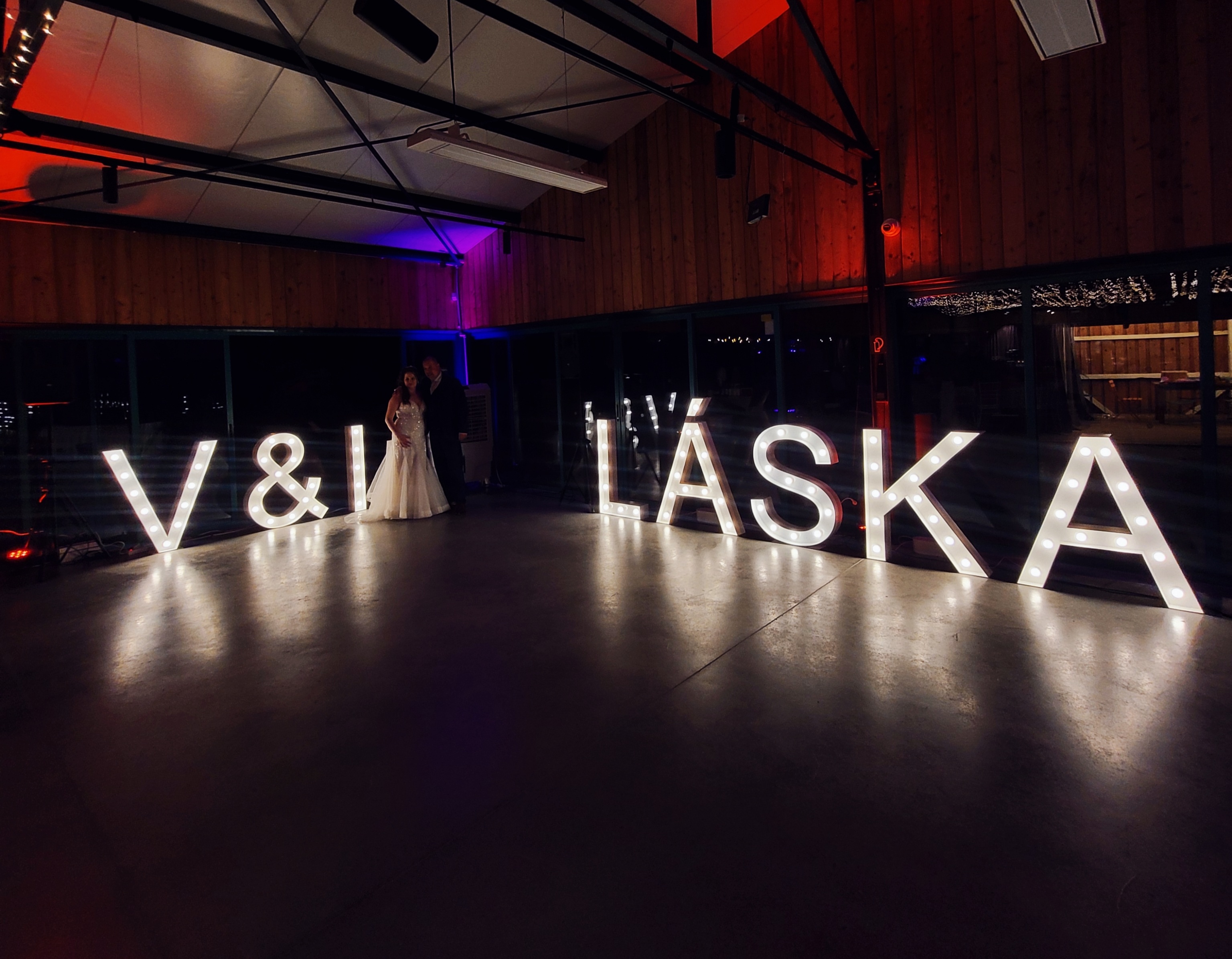 Fotostena so svietiacimi písmenami (2ks) + LED nápis: 270€